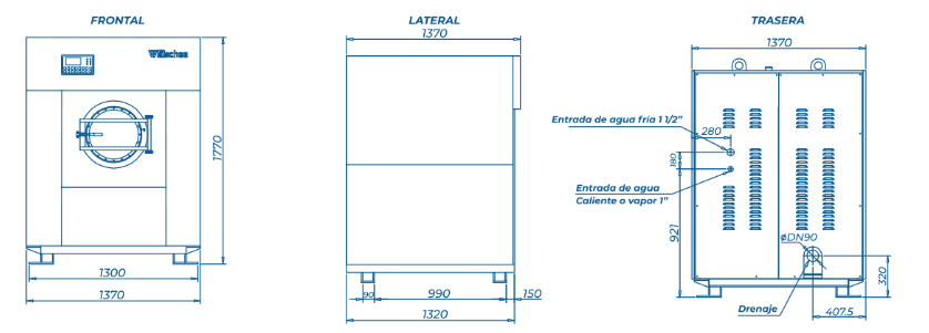 Lavadora-extractora de alta velocidad y alto rendimiento, diseñada para la eficiencia y el ahorro de recursos en lavanderías que manejan altos volúmenes. Cuenta con fuerza G superior para una extracción máxima de agua.