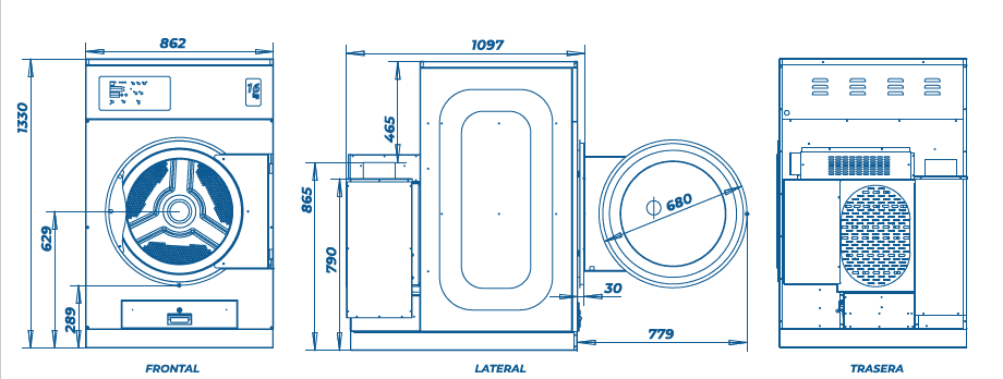 Las secadoras Wäschee están fabricadas con un cuerpo y tambor completamente en acero inoxidable, lo que garantiza resistencia superior al desgaste, a la humedad y a la corrosión incluso en operaciones intensivas.